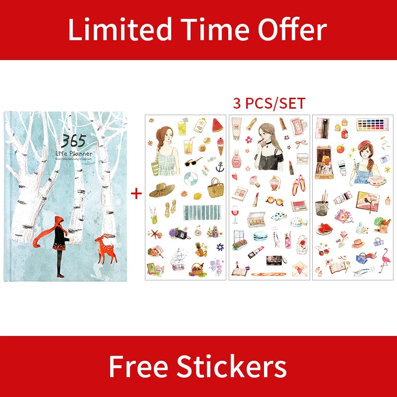 prefix] 1 pc 365 Planner NoteBook Yearly Agenda Colorful Inner Page illustration Daily Plan Bullet Journal
