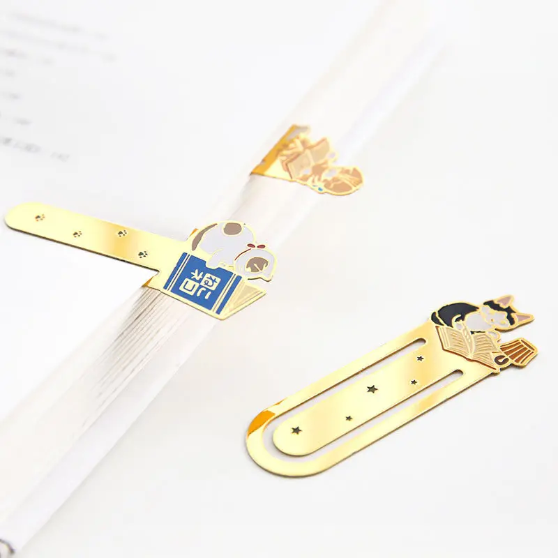 prefix] Cute Cats Reading Book Metal Bookmark Cartoon Animals Bookmark Promotional Gift Stationery Film Boo